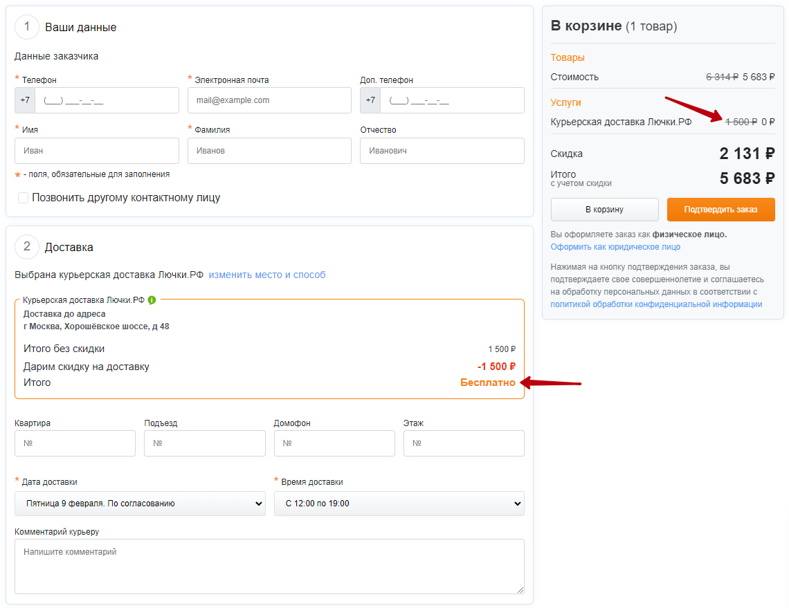 Скидка формируется автоматически, при оформлении заказа в корзине.