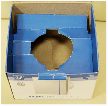 3. На крышке коробки оригинального вентилятора имеется специальная прокладка, препятствующая повреждению декоративной панели вентилятора. Вентилятор-подделка просто упакован в полиэтиленовый пакет.