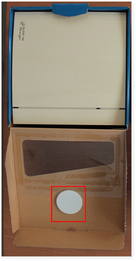 1. На внутренней части крышки наклеен оригинальный защитный круг из мягкого материала для защиты глянцевой поверхности лицевой панели от повреждений при транспортировке. Цвет оригинального вентилятора можно легко рассмотреть через пленку на крышке коробки, вентилятор не имеет целлофановой пленки.